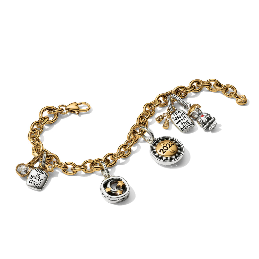 Celebrate the earth circling the sun with this celestial-inspired charm! Tiny ?rays? of hope surround the golden medallion for a joyful way to welcome the New Year.