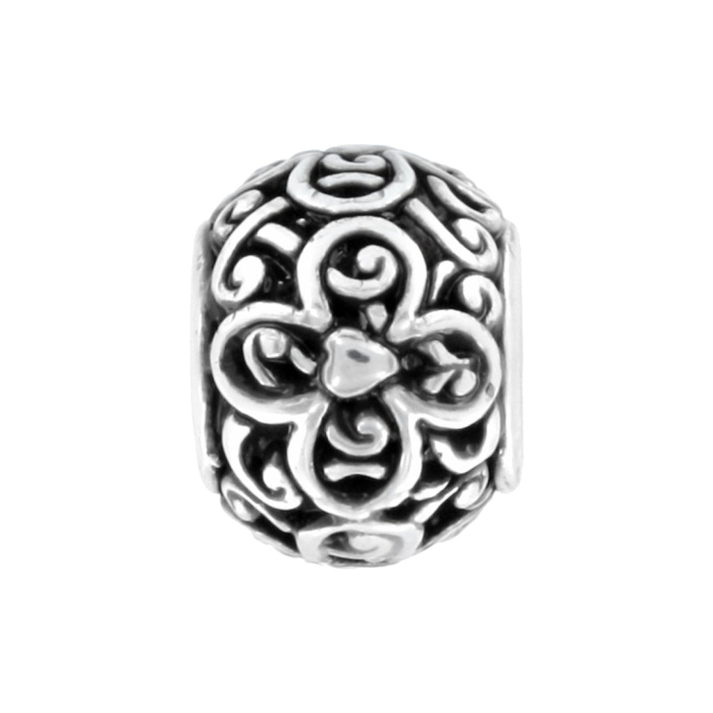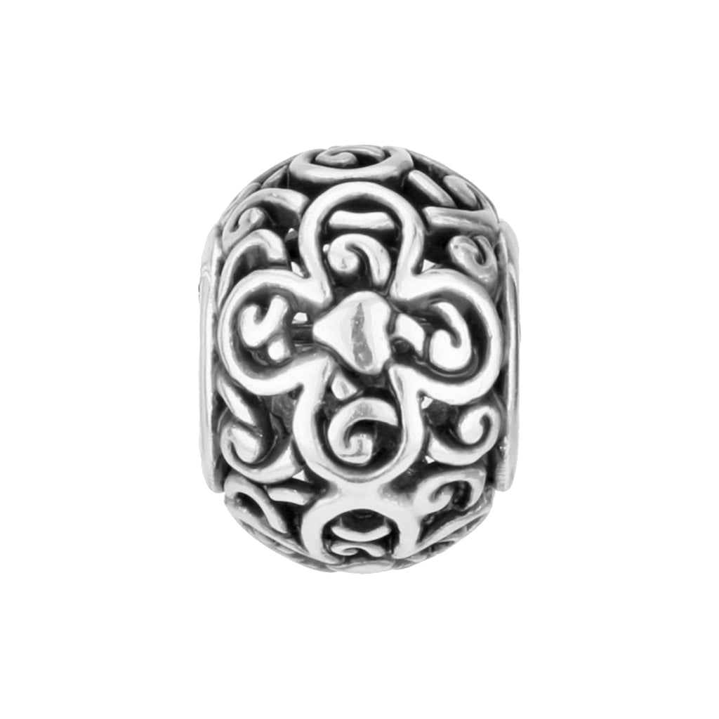 Sculpted and scrolled details give this silver bead breathtaking definition.