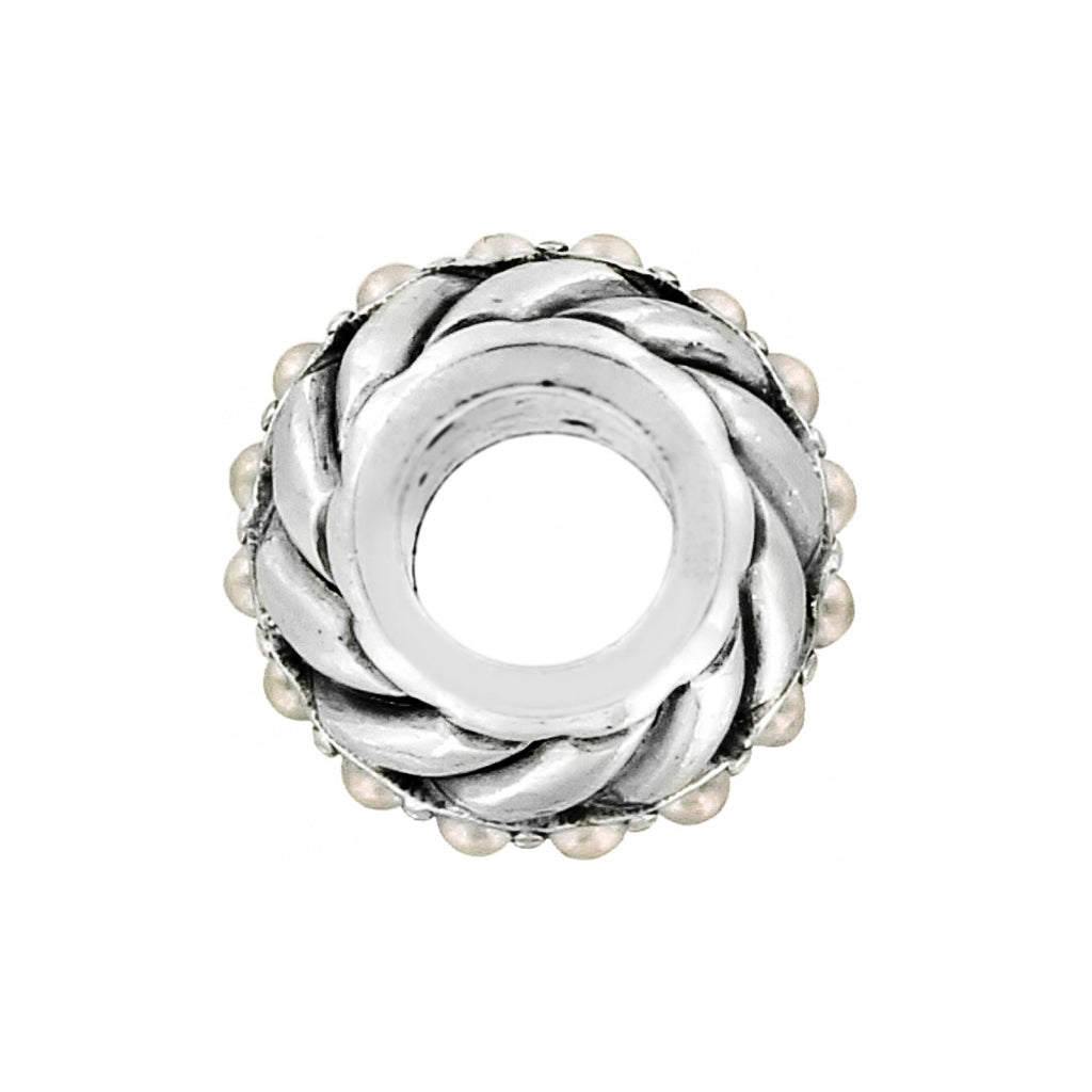 With twists of silver and glass pearl embellishments, this bead adds a subtle touch of elegance to your favorite piece of charm jewelry.
