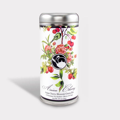 Asian Cherry Blossom Green Tea - 12 Tea Sachets - Tall Tin