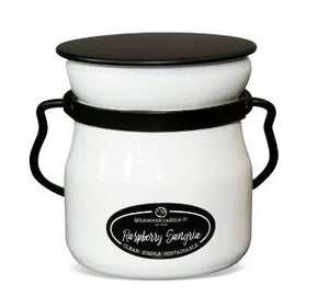 - Finished in a creamy white color, this jar is accented with the signature black ring, handle, and lid.