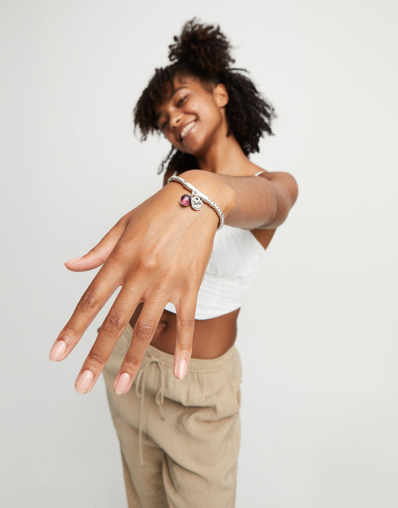 Ser Fascinante Sterling silver-plated bracelet with murano glass and the word Lucky